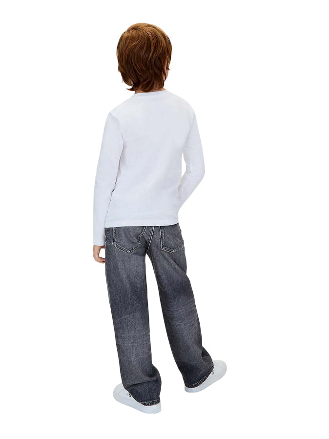 Calvin Klein IU0IU00717 YAF Bianco Maglietta Manica Lunga Junior - T-shirt Chest Logo Comfort e Stile