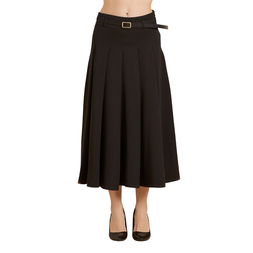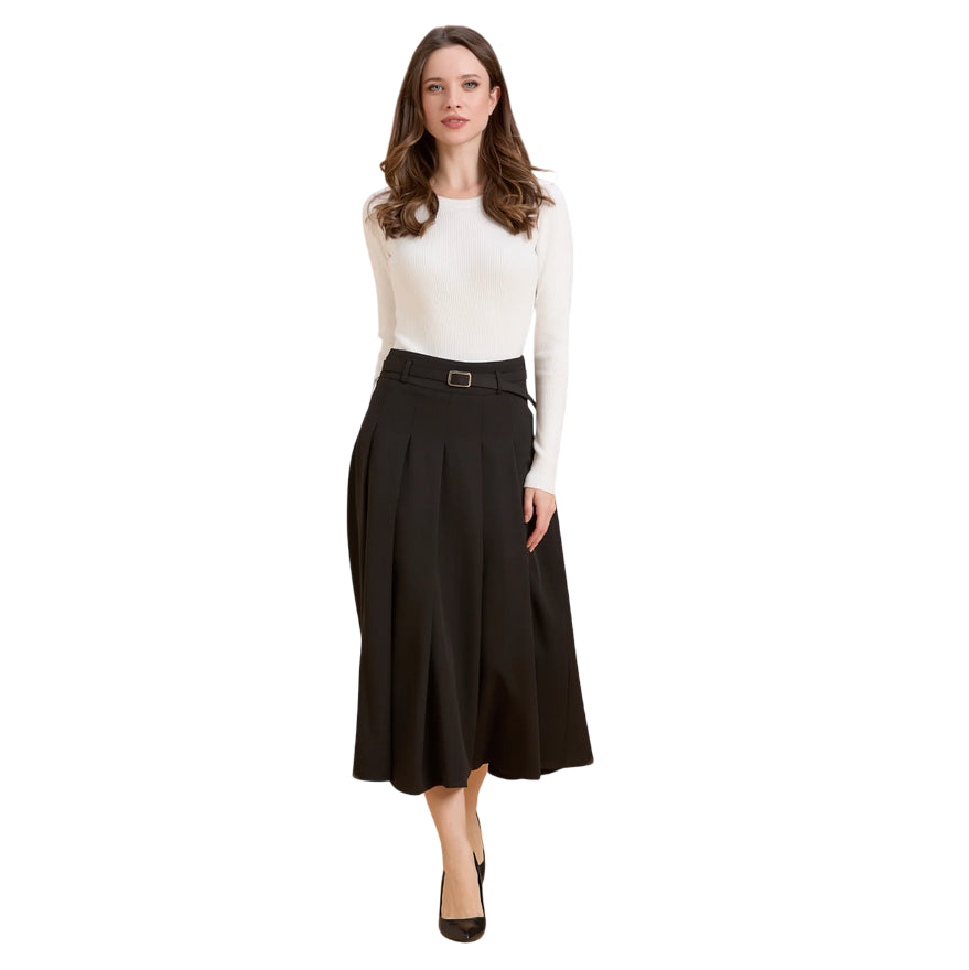 La gonna plissé Vienna è un'ottima scelta per chi cerca un capo che unisce comfort e raffinatezza. La sua lunghezza longuette slancia la figura e le pieghe ben definite aggiungono un tocco di classe senza tempo. Ideale per la stagione autunnale e invernale, può essere indossata con stivali, décolleté o sneakers per creare outfit sempre diversi.